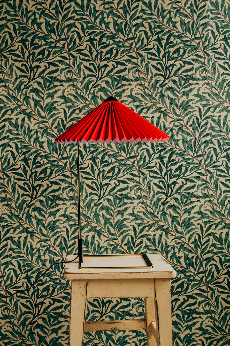 HAY Matin bordlampe L Green Matin er en klassisk designet bordlampe med et morderne twist, der fås i flotte farver der sætter kulør på dit hjem Den plisserede lampeskærm i bomuld bliver båret af et kantet stel i messing Den integrerede LED kan dæmpes efter behov, og har en brændetid på timer Materiale Bomuldsskærm.