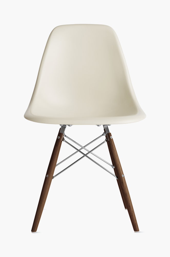 The Eames Dowel Base Side Chair is an iconic midcentury chair made with a plastic or fiberglass molded shell connected to a base of wood dowels and strengthened with diagonal steel rods The Eames Dowel Base Side Chair has a back height of 3175” (806 cm), seat height of 1725” (438 cm), width of 18” (457 cm, and depth of 21” (533 cm). Seating/ Side Chairs Charles Eames said "The role of the designer is that of a very good, thoughtful host anticipating the needs of his guests" With the molded plastic, fiberglass, and wood shell chairs, the Eames created a universal response to what everyone wants from a chair a simple, gracious form that fits any body and every place. Order your Eames Molded Plastic Side Chair Dowel Base An original design by Charles and Ray Eames, this Eames Shell Chair is manufactured by Herman Miller.