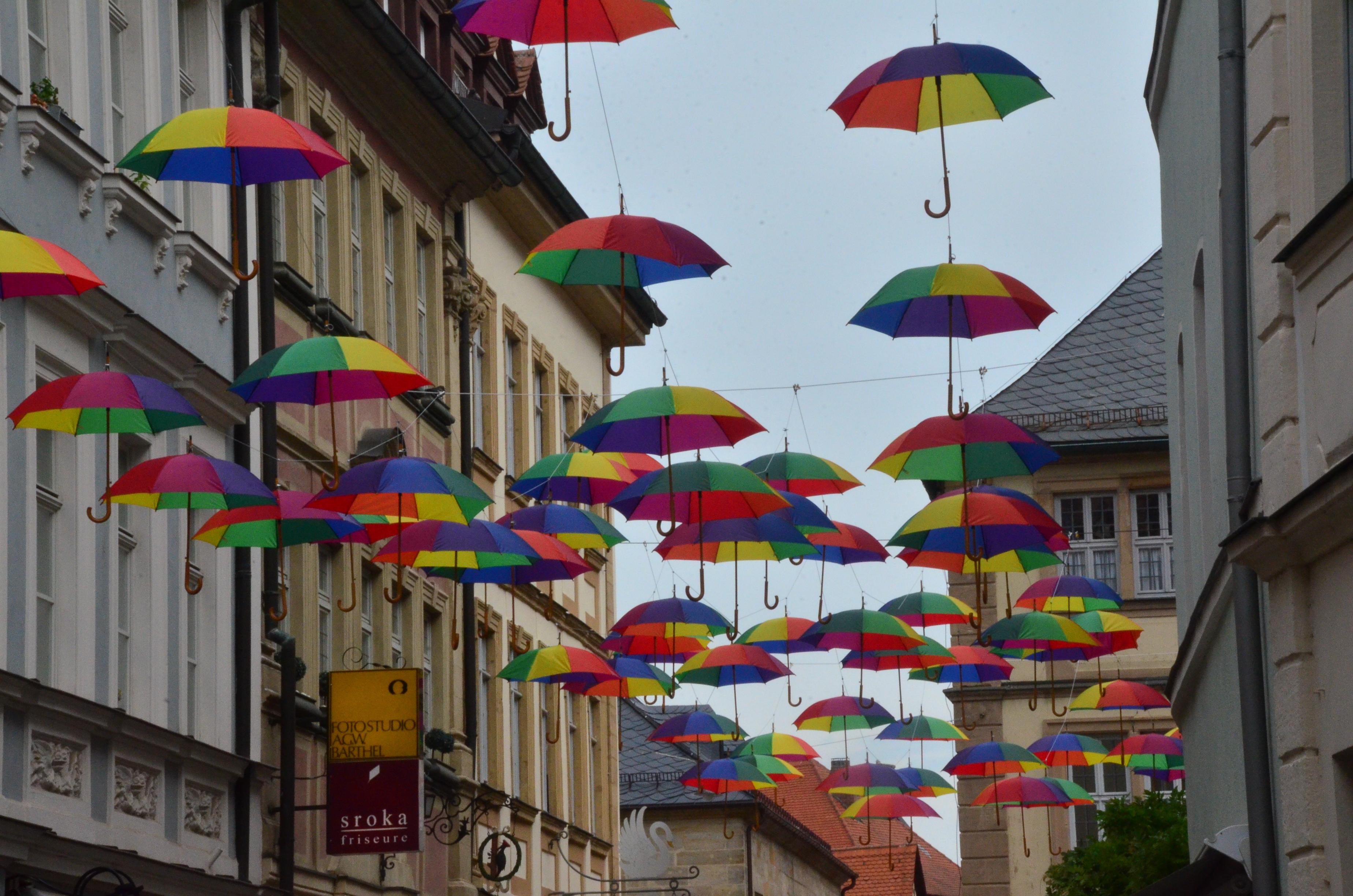 Farbtupfer In Bambergs Innenstadt 60 Bunte Regenschirme Bamberg Nordbayern De