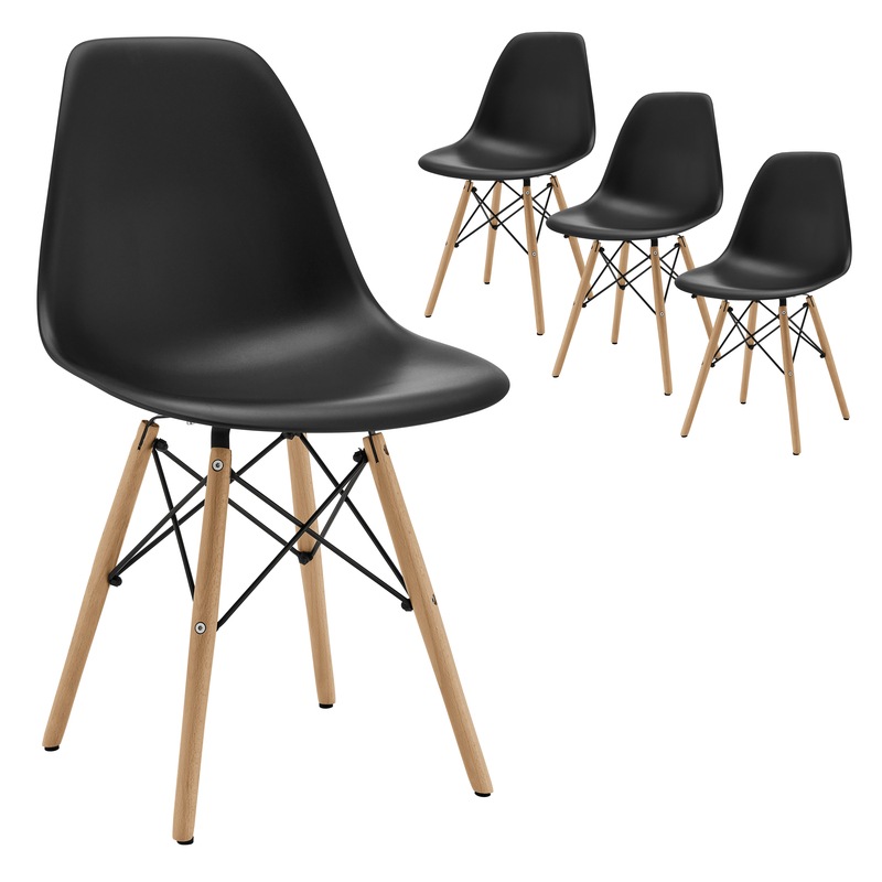 Artiss Set Of 4 Black Retro Replica Eames Dsw Cafe Dining Chairs