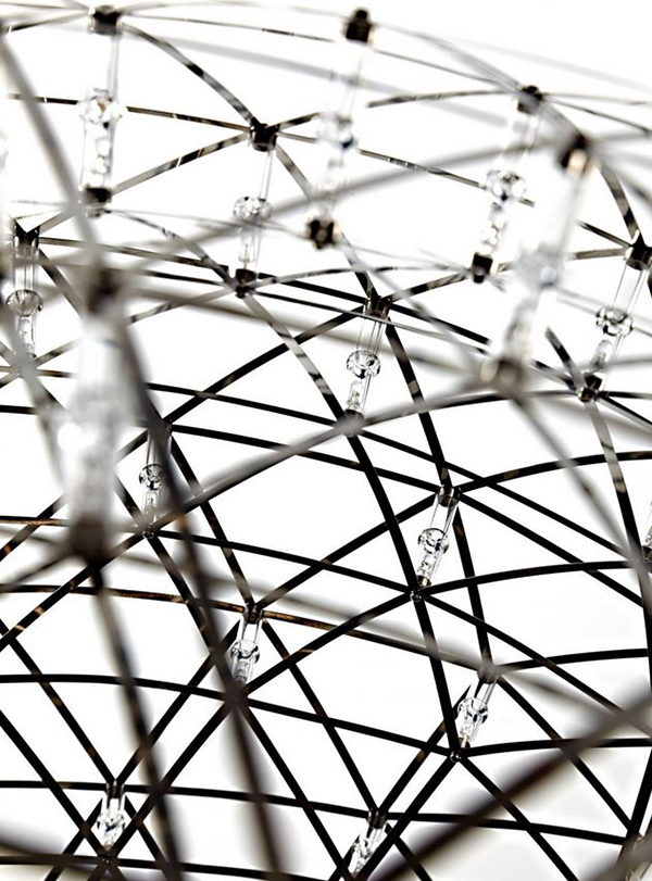 Description Raimond’s perfect sphere is punctuated by tiny LED lights that look like staring into the soft glow of a starry night Inspired by the iconic geodesic dome of Buckminster Fuller, Moooi’s pendant is the result of almost 40 years of research and dedication on the part of its selftaught designer Raimond Puts. Merged the triangles make the beautiful round shape Minuscule LED lights are attached to the intersections. It comes with a power cord LED terminals join the paths The transparent lenses help in spreading the light in all directions R43 uses 92 LEDs that consume a power of 15W R61 contains 162 LEDs that consume 25W and R contains 252 LEDs that consume 41 W of power How To Keep Raimond Clean?.