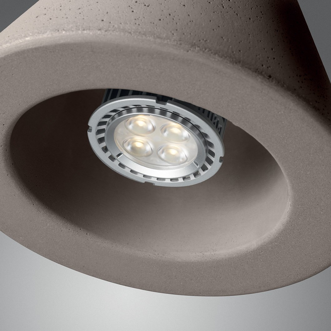 The Foscarini Aplomb Large MyLight has a wide downward light Its lamp shade has a height of cm and a diameter of 45 cm It is made of concrete and is available in brown, grey and white The pendant lamp in white is supplied with cable and canopy in white, the other two lamps with cable and canopy in black The cable can be shortened if. The Foscarini Aplomb Mini Pendant depicts the raw beauty of concrete with a bold conical shade composed of a special mixture, acting as the perfect vessel for focused down light A miniature of the original Aplomb Pendant, the straightforward nature of the design can accommodate the smaller size, increasing the functional applications in a space. The Aplomb Large Pendant features a White cement shade with White cord and canopy or a Brown or Grey cement shade with Black cord and canopy Provides direct down light UL listed Foscarini lighting was founded in 1981 with the belief that light is the vibrancy of energy and soul Openly exploring the possibilities of Murano glass, there.