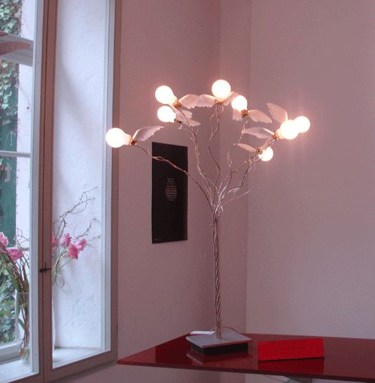 Ingo Maurer and Team 10/17 Birdie`s Busch LED is the new LED version of the wellknown table lamp Seven handbent tinplated copper rods are equipped with matt, winged LED bulbs, like a swarm that flies up from the ground.