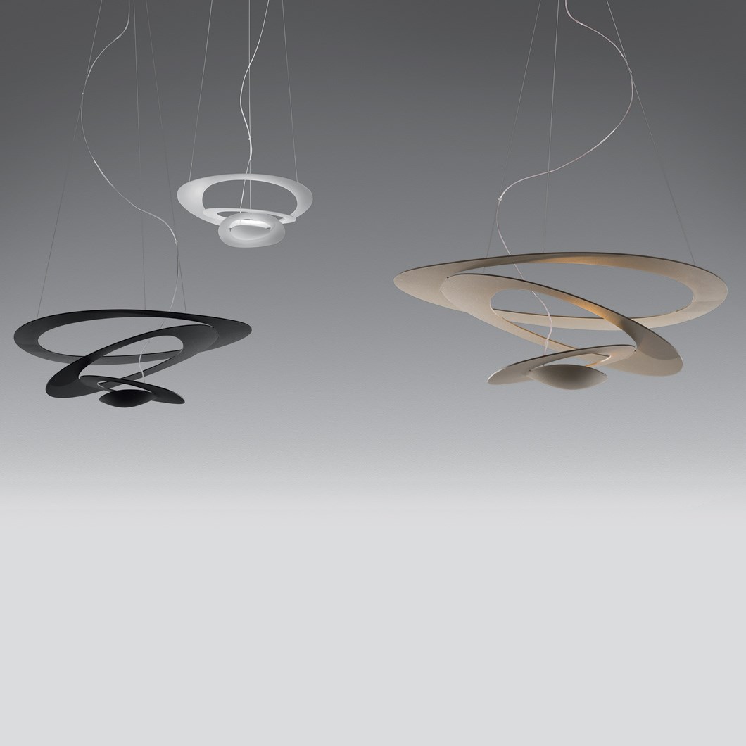 The Pirce LED Ceiling Light by Artemide features a painted aluminum body which provides lighting Artemide has a 3word design philosophy, "the human light," that has guided them since their 1960 start in Milan, Italy Artemide's task lampslike the Tizio (1972) and the Tolomeo (1987)are longstanding icons of modern Italian lighting. The Pirce LED Suspension Light by Artemide has all the right elements to enhance the aesthetics of any modern interior space A single sheet of aluminum is sliced up to create this elegant structure composed of slim, spiral rings that gracefully twirl downwards This awardwinning design is equipped with an energyefficient LED light source that is concealed within the bottom bowl When lit. Artemide Pirce Micro Suspension Pirce 1815/16" Wide Single Tier Integrated LED Suspended Ring Chandelier Available in 3 finishes $500 $1, Compare Artemide LEDBAR 4 Suspension Square Direct / Indirect LEDBAR 465/8" Wide Integrated LED Linear Chandelier with Up / Down Lighting.