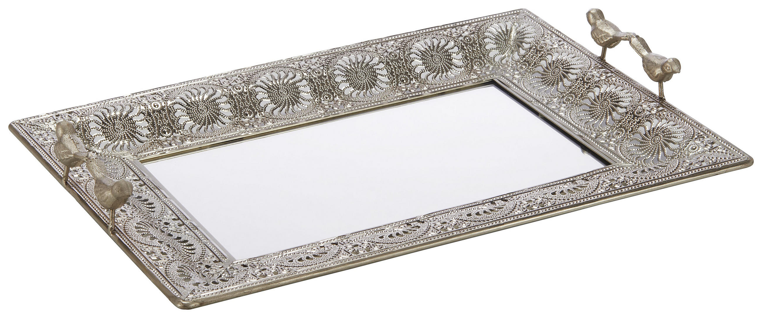 Vintage Serviertablett Mit Spiegelflache Und Griffen Rechteckig Dekorativer Servierplatte Fur Die Kuche Gold Amazon De Kuche Haushalt