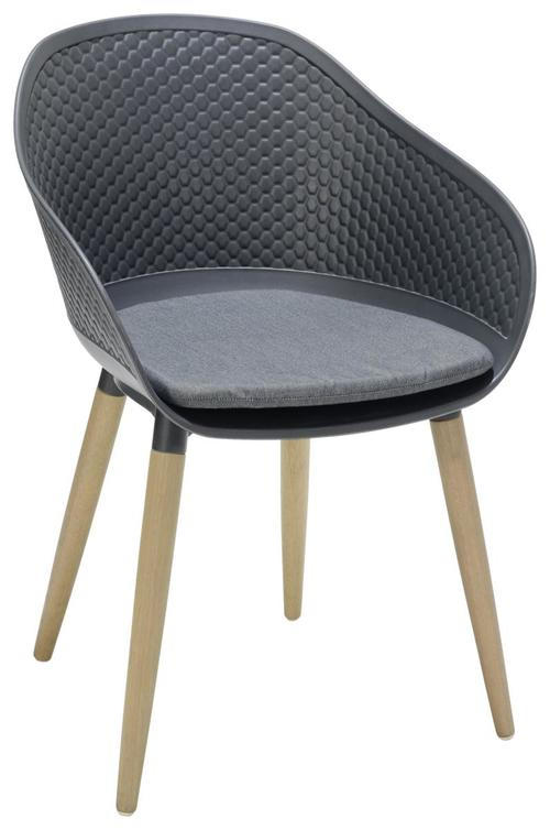 Amazon De Ribelli Gartenstuhl Solentum Aus Kunststoff In Grau Stuhl Mit Holzbeinen Fur Garten Balkon Terrasse Gartensessel Im Retro Look Lounge Sessel Modern