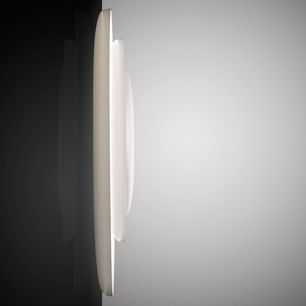 Foscarini has always made the product its focus, and it is this project culture that is the driving force behind its choices Its collaboration with international designers, both well known and upandcoming, an ability to identify and develop the winning elements of the concept at the heart of every project and interpreting and developing these coherently, has enabled Foscarini to take its. The Bahia Mini lamp by the Italian lighting brand Foscarini is composed of three overlapping, slightly asymmetrical polycarbonate plates Placed behind the plates is a dimmable LED unit that provides a soft, nonglare light reflected from the bright white surfaces. Foscarini Bahia wall and ceiling lamp in white Individual product image of the Bahia wall and ceiling lamp in white with two concentric circles and a round center The organically shaped lamp by Foscarini is a sculptural eyecatcher with indirect light quality that can be attached to both the ceiling and the wall.