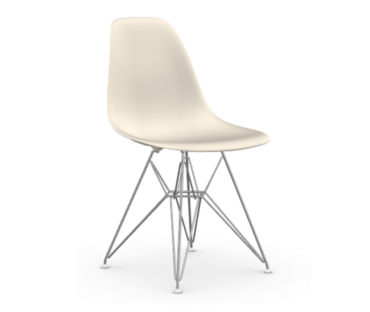 Vitran Eames DSR tuolia kutsutaan myös Eiffeltuoliksi, sillä sen sirot metallijalat muodostavat graafisen, ristikkäisen rakenteen Lyhenne DSR tulee sanoista Dining Height Side Chair Rod Base Charles ja Ray Eamesin 1950luvulla suunnittelemien ikonisten muovituolien suosio piilee niiden ergonomiassa, ajattomuudessa ja jalkavaihtoehdoissa.