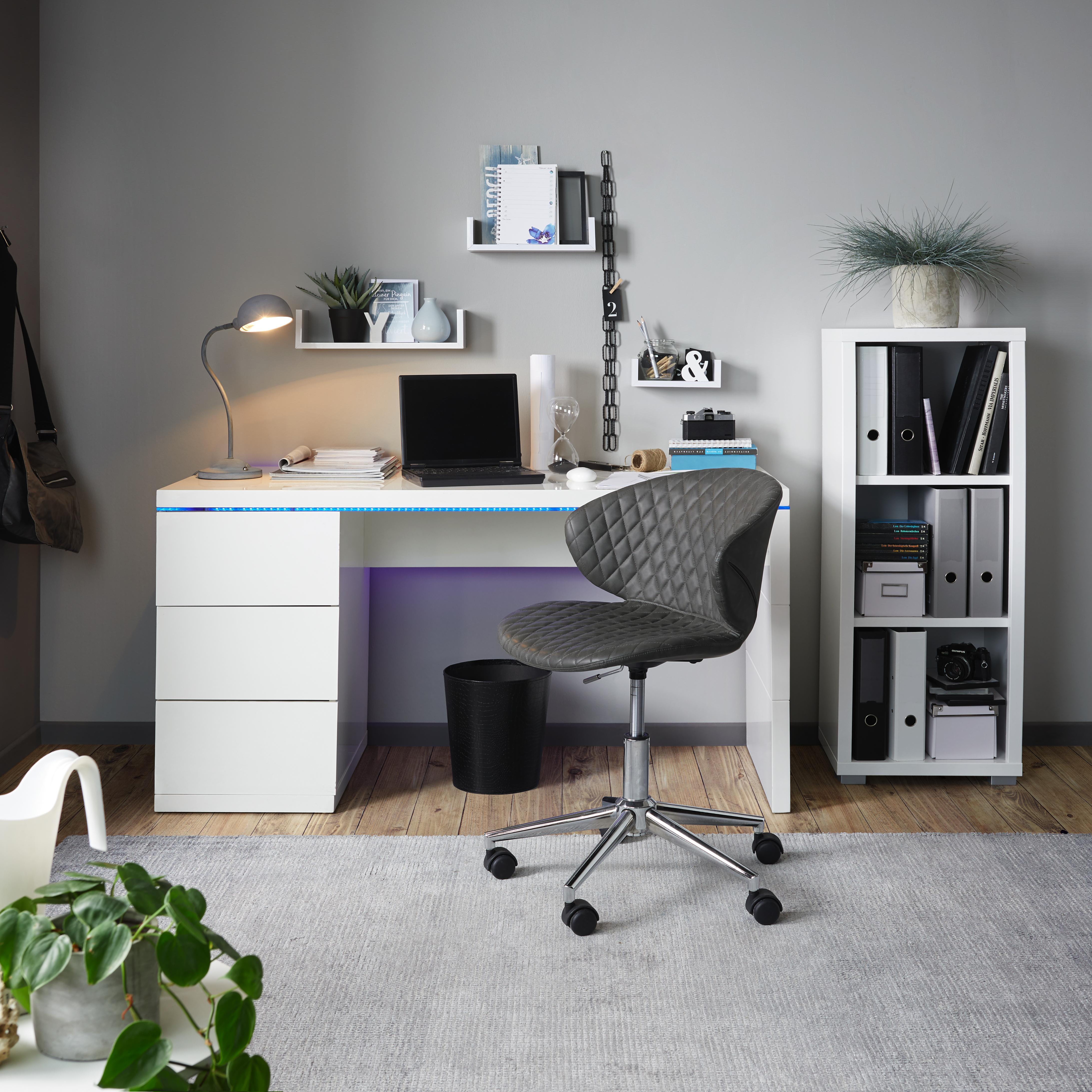 Hochglanz Schreibtisch Prakto In Weiss Mit Drei Schubladen
