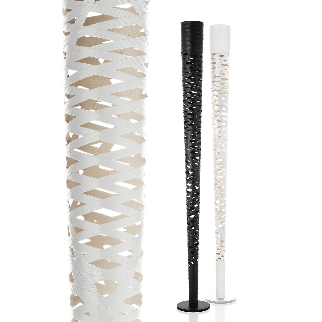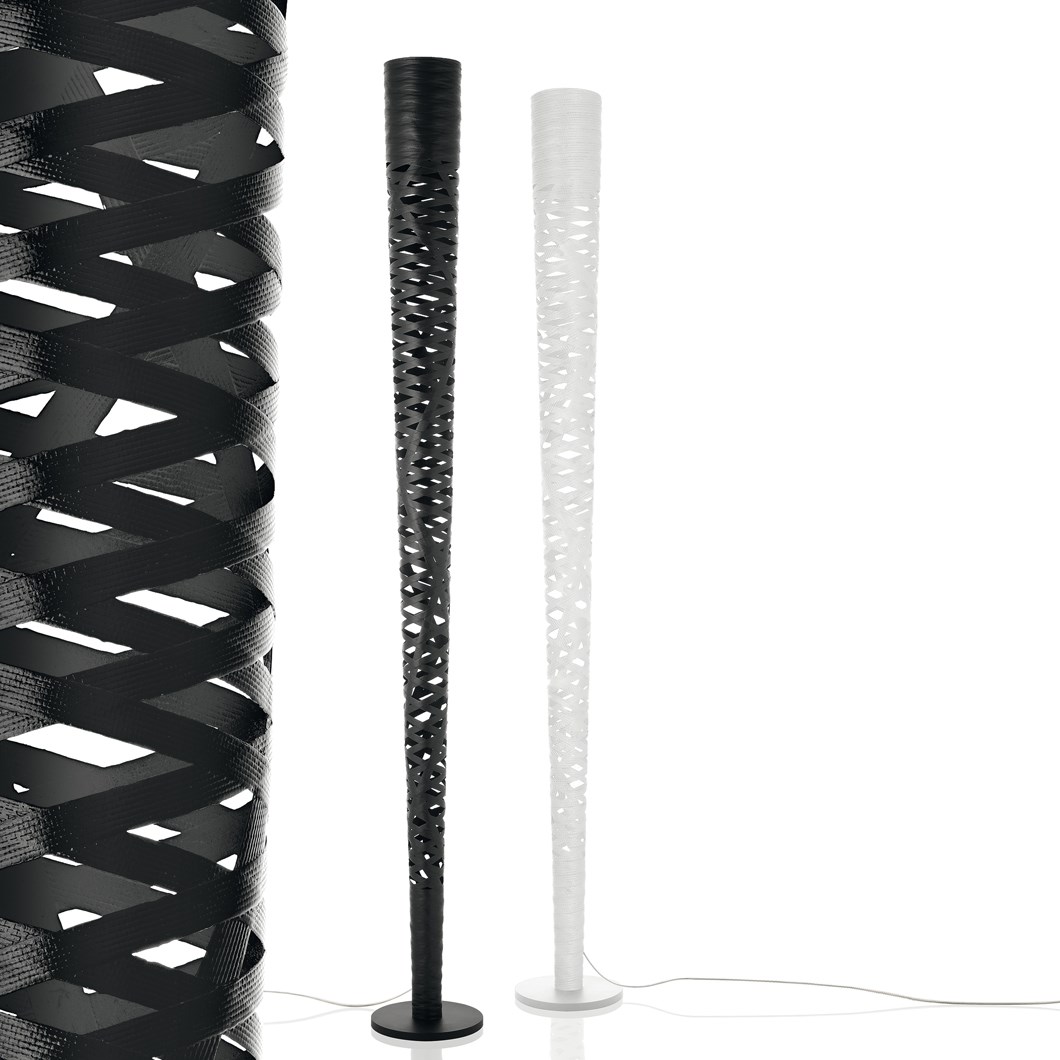 Foscarini Tress Stilo Floor LampThe seduction of a woman’s tress was the initial inspiration for the Tress family of lamps This designcometrue by Foscarini was achieved through the development of a completely originalm technological process, involving a fiberglass and resin tape woven with orderly casualness to become the structure and aesthetics of the lamp.