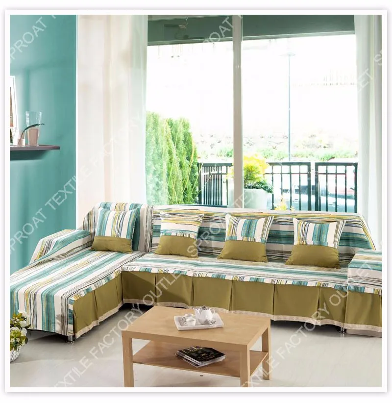 Mediterranean Style Cotton Blue Strips Cushion Slip Resistant Sofa Covers Bed Cover Design Sofa Covers Living Room Sofa Set