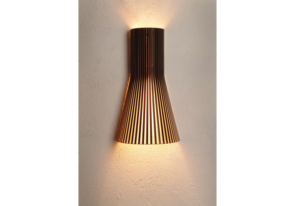 Wall lamp made of wooden lamellas The Secto wall luminaire from Secto is a variant of the iconic 40 pendant luminaire made of compressionmoulded birch wood The wall lamp with slightly conical shade can be mounted on the wall in two different positions. Secto Design is a Finnish company specialised in designer lamps made of wood The entire Secto Design collection is designed by a Finnish architect Seppo Koho and it has a clear and timeless Scandinavian feel The lamps are handmade of Finnish birch which gives an appealing warmth to the light The design of the lamps. Secto Design lamps have been tested in Finland by SGS Fimko and found to comply with the essential safety requirements required for CEmarking Secto Design recommends the use of energysaving and LED bulbs.