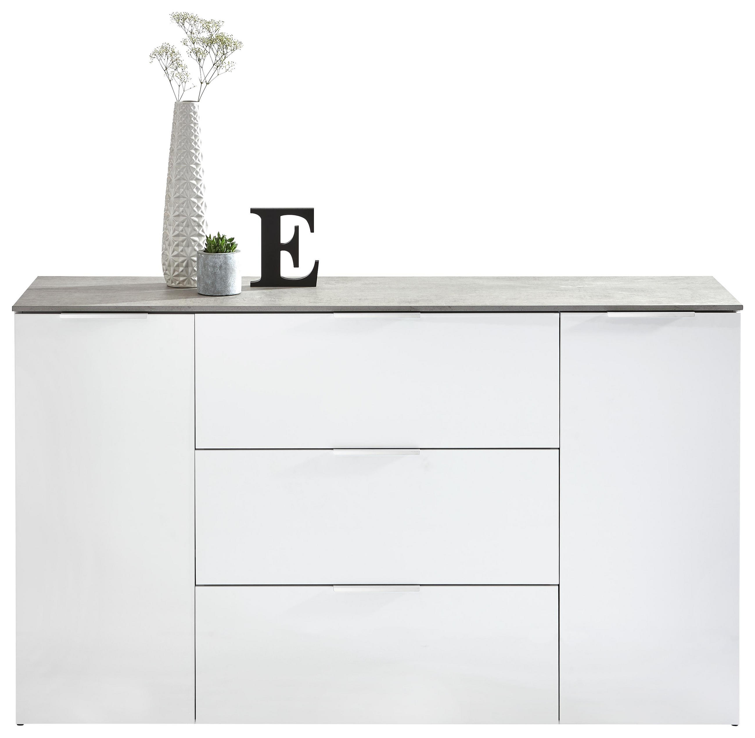 Kommode Sideboard Beton Nb Weiss Edelglanz Mit 3 Turen Und 2 Schubkast