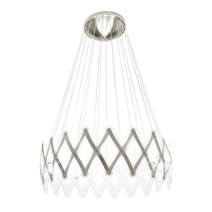 Serien zoom xl. The Zoom XL chandelier has been designed by Floyd Paxton for Serien lighting Thanks to the concertina grille principle, it can transform itself It is a circular concertina grille, enabling the diameter of the luminaire to be adjusted ad infinitum. The larger version, Zoom XL, is an impressive chandelier for bigger spaces such as reception halls and stair cases You can adjust the diameter yourself, anything between 40 and 260 cm is possible Zoom is available from Ambiente Direct For more information you can visit the website of serienlighting, the manufacturer of this gorgeous lamp. And for that big occasion there is ZOOM XL, which has a maximum diameter of 260 meters The XL version is exactly twice as big as the normal version and given its lightness is impressive even in very large rooms.