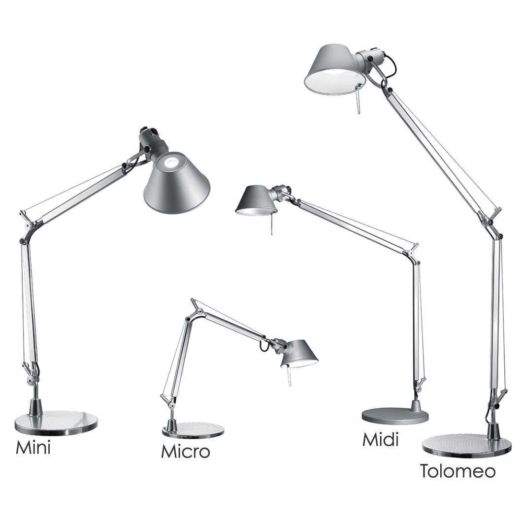A version of the Compasso d'Oro awardwinning table lamp from 19, the Tolomeo Mini Table Lamp by Artemide continues the Tolomeo collection's decadeslong tradition of mixing beautiful design and robust engineering It is composed of a fully adjustable, articulated arm structure in extruded aluminum with a tiltable and rotatable diffuser in several aluminum finishes An incorporated dimmer. Tolomeo Micro is the smallest version of the popular Tolomeo lamp by Artemide It has the same structure and similar proportions as its big sisters, but so small and spacesaving that it can be used in even the smallest spaces Thanks to the adjustable structure and movable lamp head, the light can be precisely directed. View Distribution image Tolomeo micro LED table with inset pivot Aluminum TOL0090.