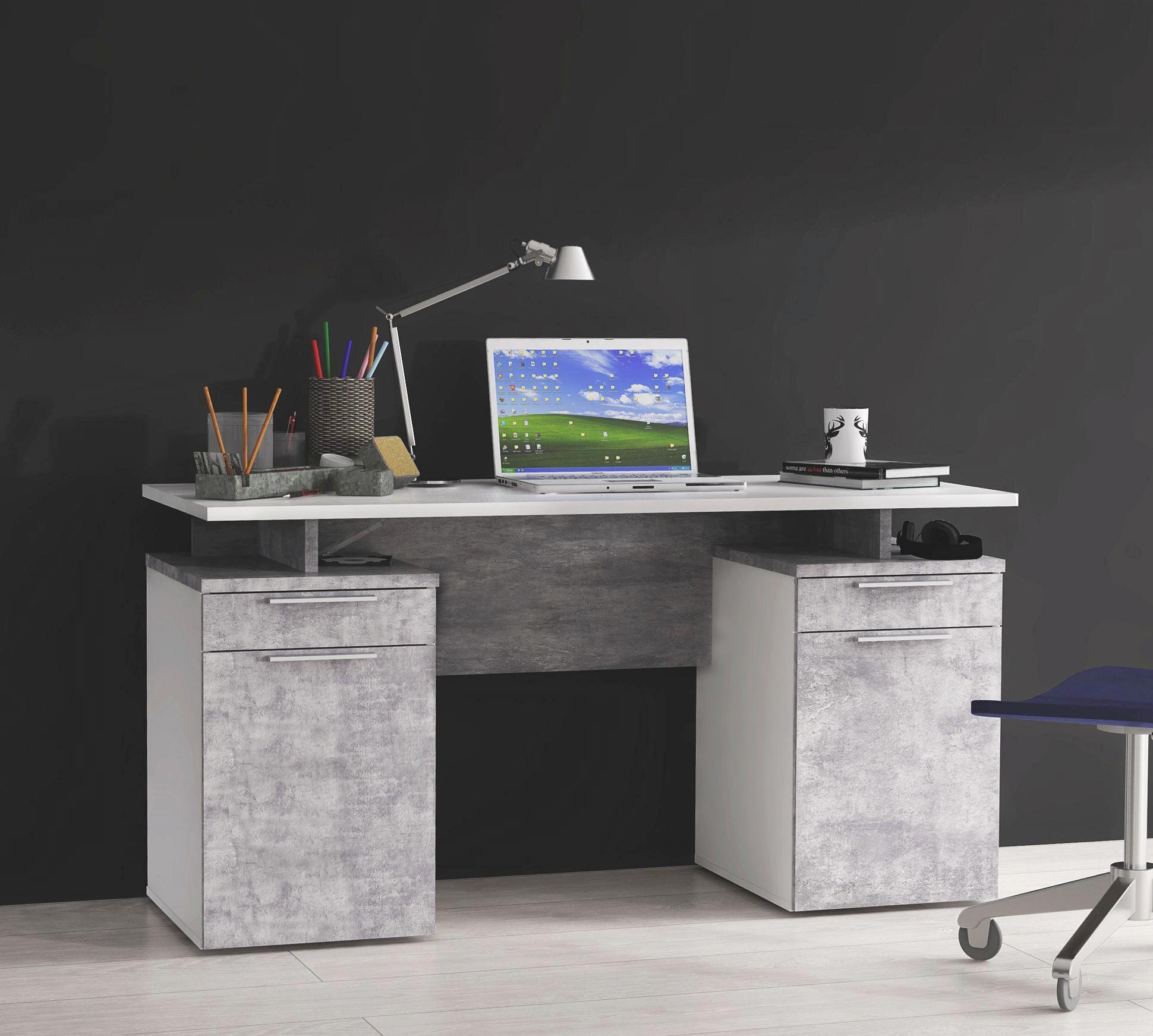 Pc Schreibtisch Slawo In Beton Grau Weiss Pharao24 De