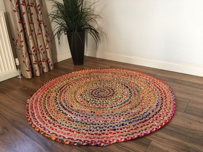 Rund Chindi Teppich Jute Baumwolle Bunt Geflochten Billig 97 Cm Indisch Ebay