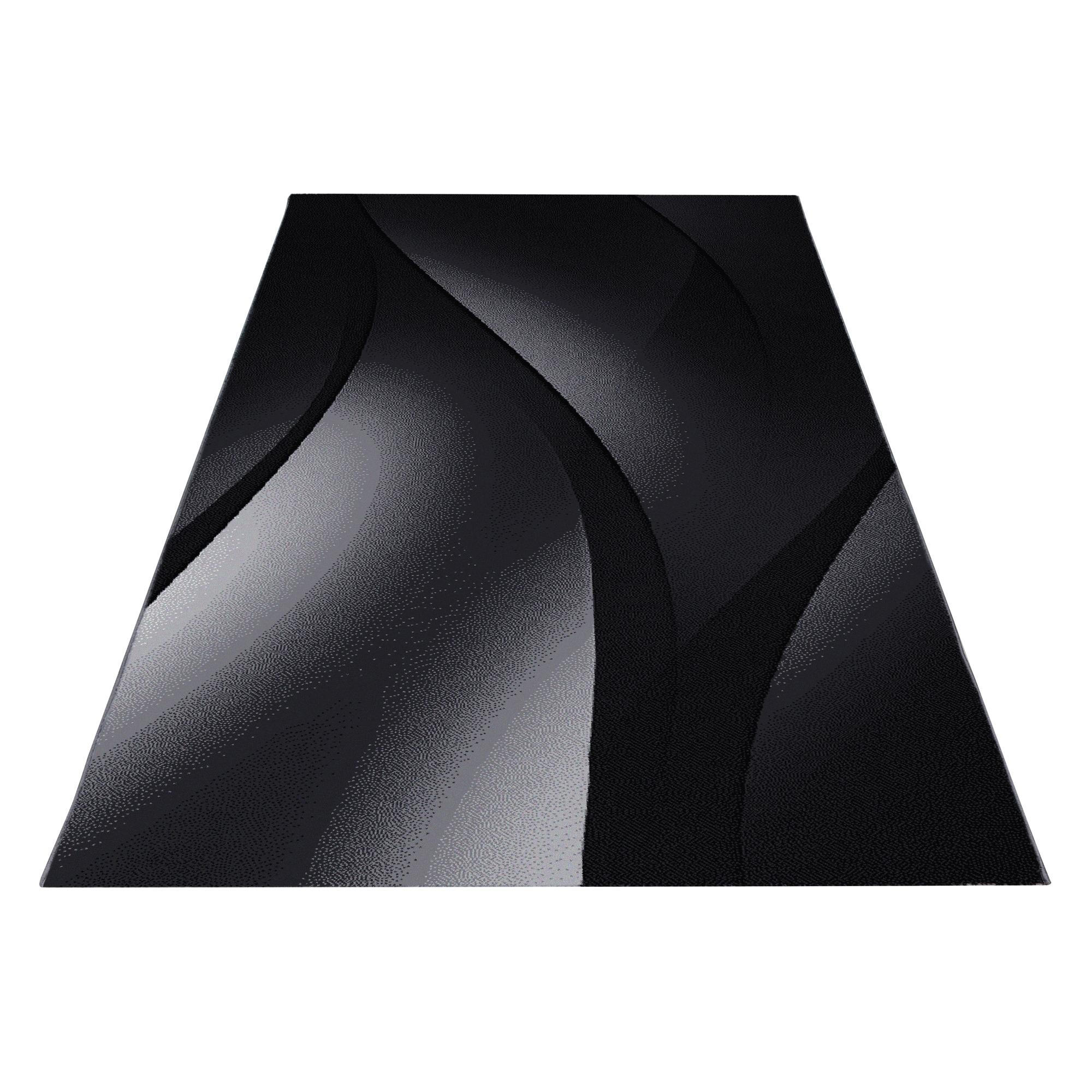 Teppich Mit Konturenschnitt Moda 1452 Schwarz Flachflor Kurzflor Wohnteppich Wohnzimmer Laufer Schwarz Weiss Modern Wellen Muster Handcarved Handcarving Glanzgarn Frisee Hoch Tief Effekt 3d Effekt