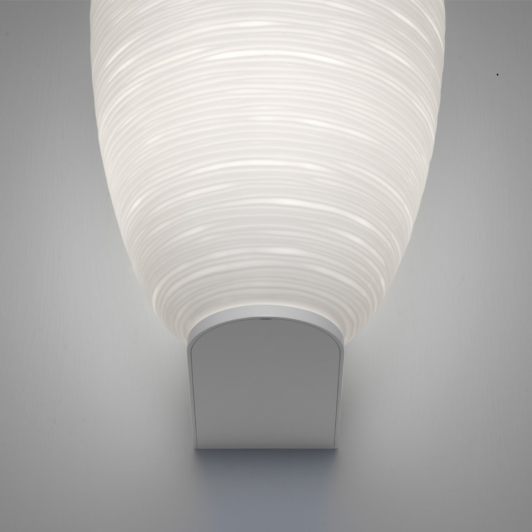 Wall lamp Rituals 3 reminds of lanterns from the Orient If you look at the Rituals 3 wall lamp from the Venetian manufacturer Foscarini, you might think it is a paper lantern in which a candle provides a warm glow This effect is created by a structure of irregularly arranged grooves that extend across the mouthblown glass of the lampshade. Foscarini's experience combined with the skill of master Murano glass makers made this creation possibleThe Rituals Wall Sconce provides ambient, diffused illumination The striped effect of the diffuser is achieved using a mold with negative decorations, which are repeated across the surface of the glass. If you love lighting and design don't miss the opportunity to meet the italian quality of Foscarini lights A whole website about all design and lighting news, directly from Italy Enter now!.
