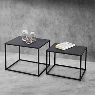 2er Set Couchtische Setto Metall Schwarz Grau Sofa Tisch Couchtisch Metall Couchtische