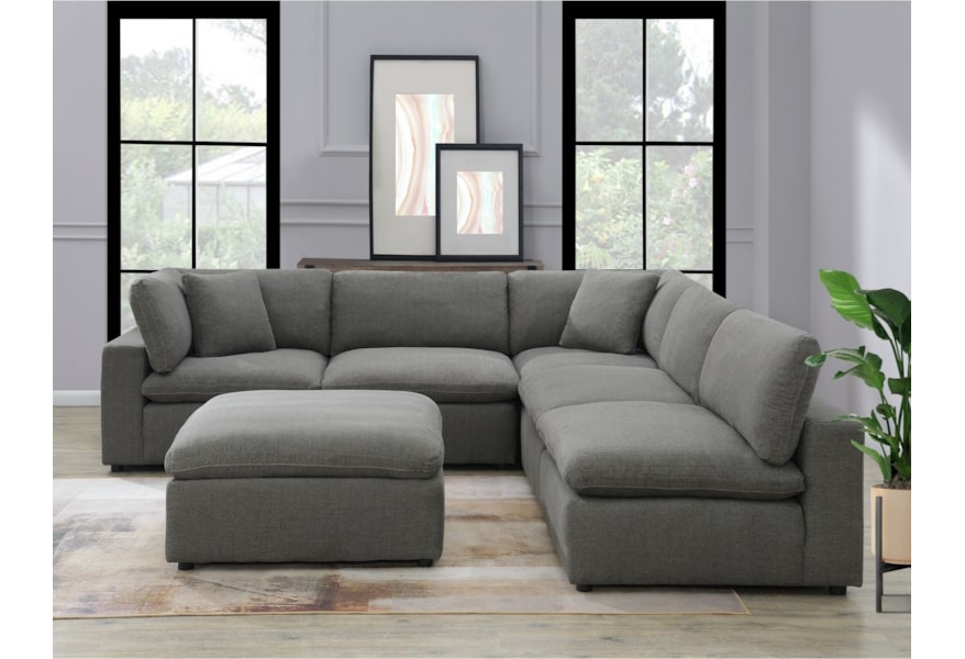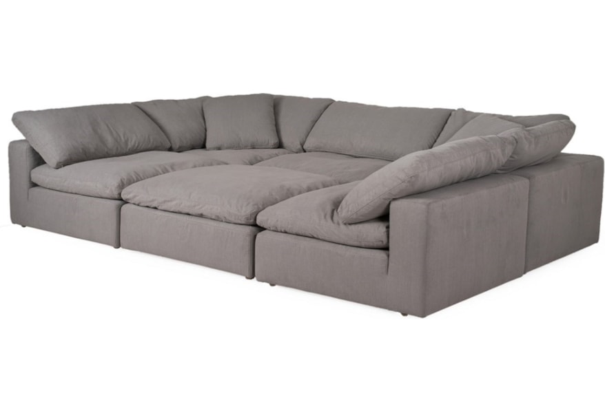 Sunset Trading Cloud Puff 6 Piece Slipcovered Modular Pitt Sectional Sofa Performance Gray Beyond Stores