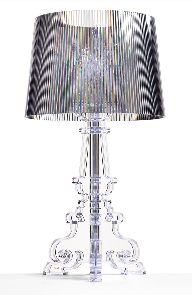 From Kartell "Designed by Ferruccio Laviani and made in Italy by Kartell, the Bourgie Lamp reenvisions the spectacular, ornate qualities of a baroque lamp in transparent polycarbonate Its flared shade has a pleated texture that allows it to create myriad reflections Use it on a side table or nightstand for reading, or set it on the floor to create mood and draw attention like the sculpture. Kartell Bourgie Table Lamp is a classic table lamp with modernist design style The light it emits is warm and comfortable Free shipping. The Kartell Bourgie Table Lamp is a Kartell favorite due to designer Ferruccio Laviani's ability to combine a classic Baroque form with decidedly 21st century polycarbonate construction The resulting statement piece is at once elegant and ironic Available in a number of unique single or multicolor options.
