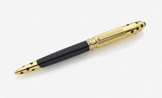 Available in lacquered, leatherencased, motherofpearl, solid gold and hardstone versions, Cartier pens are a signature of unique taste in fine accessories These most precious writing instruments offer a perfectly proportioned shaft and cap and a 750gold flexible nib ×. Artikel Nr AT 70,00 €. Santos de Cartier ballpoint pen, large model, black composite body and cap, details and goldfinish screw Dimensions 1405 x 129 mm Accompanied by a ballpoint pen refill, black ink, medium size Cartier offers you the possibility of personalising your writing instrument.