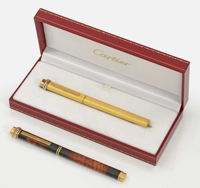 View sold price and similar items Plaque Or G Waterman Kugelschreiber und Füller 18K Gold Feder Cartier Stift / Plaque Or G Waterman ball point pen and pen 18K gold tip Cartier Pencil from Auktionshaus Oberursel on September 6, 0118 300 PM CEST. Santos de Cartier Kugelschreiber Kleines Modell, graviertes Metall, GoldFinish Stifte aus der Kollektion Santos de Cartier Eine Kollektion der Maison, die Teil einer langen Tradition schöner Objekte ist. Delivery/Return You may return or exchange your Cartier creation within 30 days in a new and unused state, in perfect condition, with all protective materials in place and tags and stickers attached to them.
